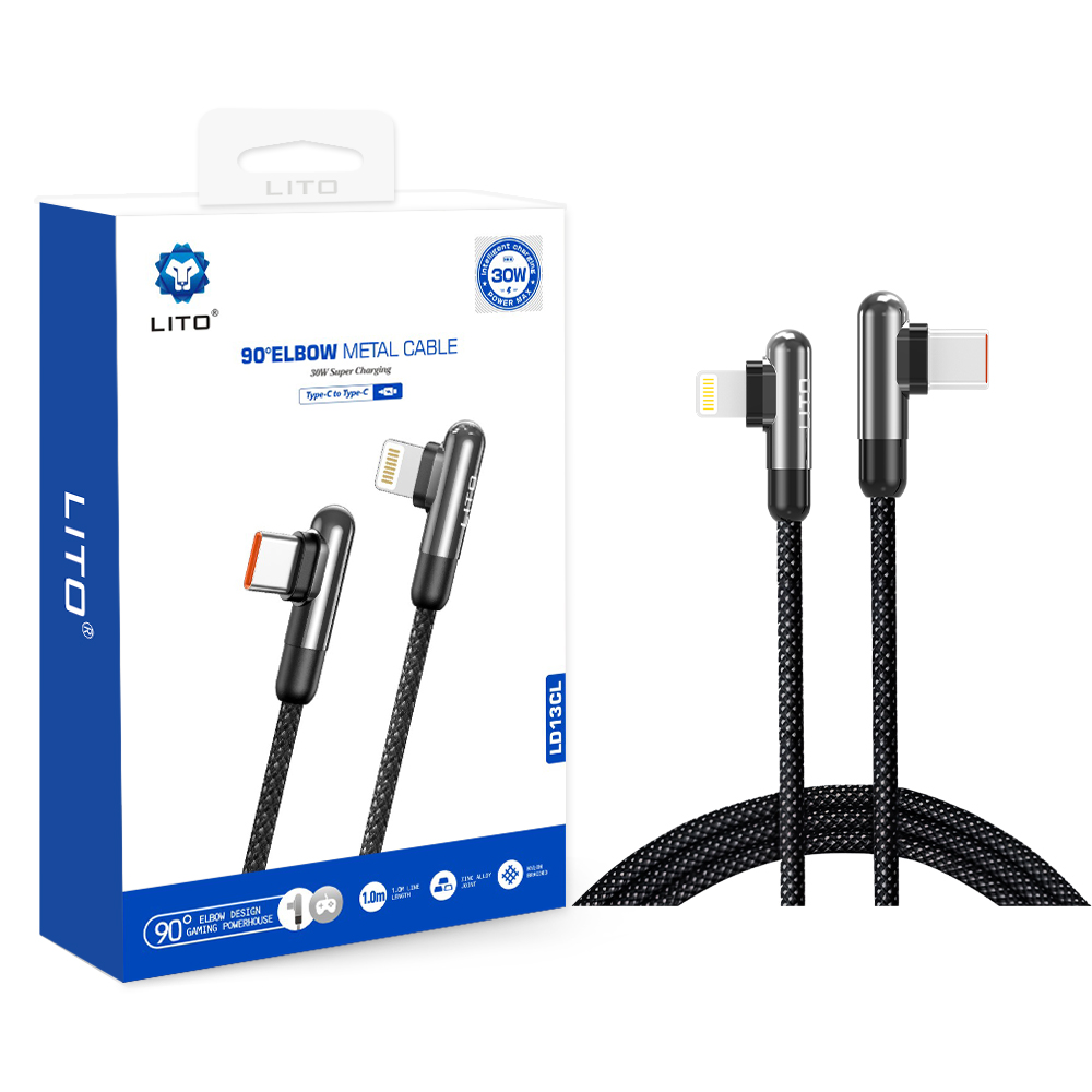 ITO L13 90° Elbow 60W Metal Şarj Kablosu, gelişmiş dik açı tasarımı yumuşak ama güçlü naylon örgülerle birleştirerek hızlı 60W şarj, 480Mbps