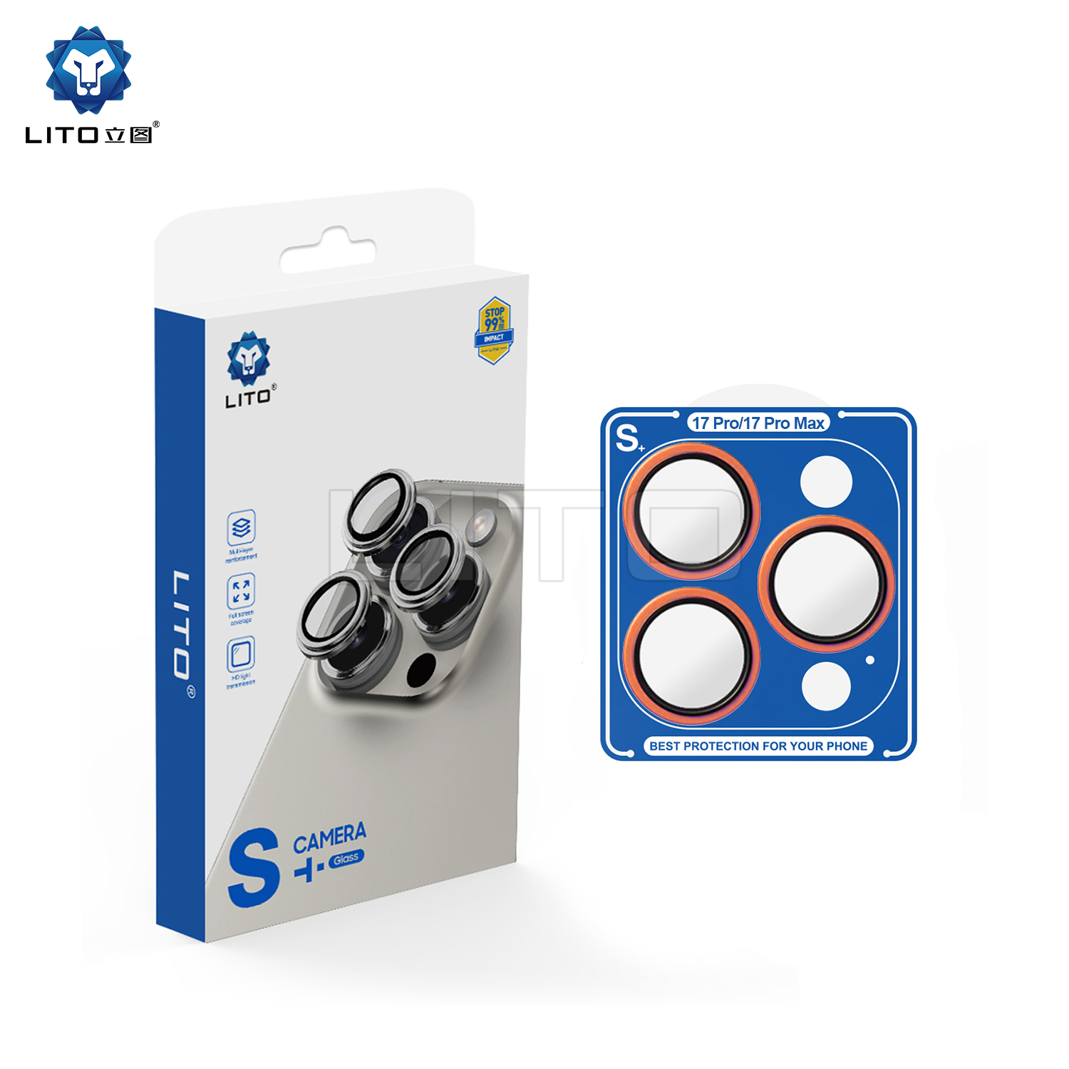 LİTO iPhone 17 Pro/17 Pro Max Kamera Lens Koruyucu Orange